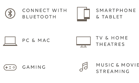 • Connects easily with all audio devices (TVs, smart phones, tablets, music players, game consoles, home theater devices etc.)
