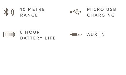• Connect via Bluetooth (4.2, A2DP audio protocol; connection distance of up to 10m) or 3.5mm jack